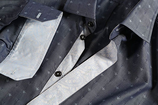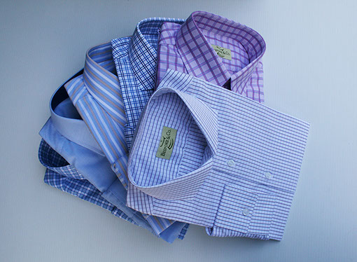 Our dress shirts and sport shirts are made using the finest Egyptian, Sea Island, Italian, and English cottons in the tradition of Turnbull and Asser, Charvet and Borrelli. We use a multitude of styles and patterns including fine 2-ply broadcloths, light weight Italian twills and fine brocade dress cottons. Each shirt is constructed using single needle tailoring, Mother of Pearl or Trocas Pearl buttons and Swiss fusible interlinings to offer a clean pressed appearance. We offer over two dozen collar and cuff styles, a split back yoke a seven or eight-button front placket and a comfortable armhole.