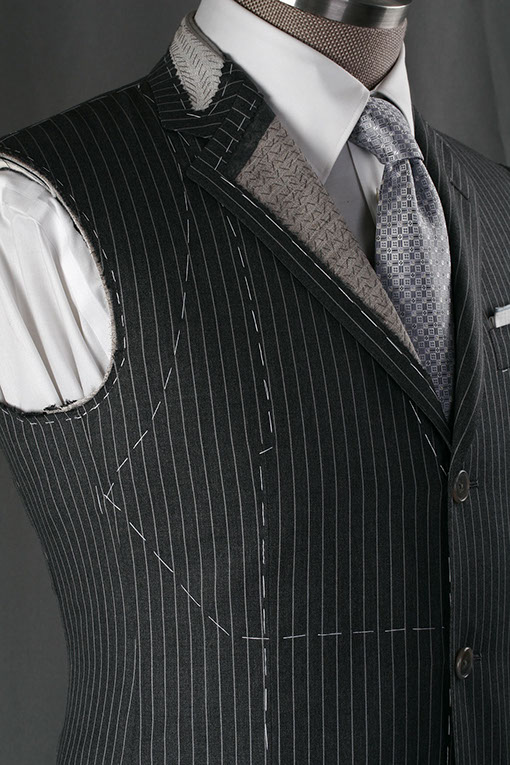 Details such as button placement on jackets and blouses, zipper position on dresses and skirts, and rise preference on pants and jeans are all taken into consideration when designing and constructing our women’s custom clothing. We use the finest Italian, English and other European piece goods, natural fiber threads, Bemberg linings and Corozo buttons. Details such as side or center vents, ticket pockets and other minor details are up to the discretion of each client. We include additional minutiae such as separate pen and pencil pockets, French facing, functional buttonholes on the jacket sleeves, craft or pic stitching and a personalized embroidered label on the inside lining.