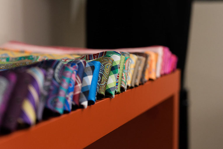 The necktie is the one unique, outstanding, descriptive accompaniment to a man’s outfit. It represents emotion and embodies the spirit of each individual’s personality and present mood. Our neck-wear collection is inspired by tradition. It is comprised of the finest quality construction, impeccable styling, fabrication and detail using the latest designs, materials, colors and textures. Our ties are handmade using the finest fabrics and interlinings. We also offer an extensive collection of bow ties, fancy patterned socks, pocket squares, cuff links and magnetic collar stays.